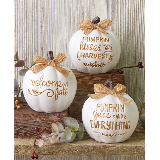Set Of 3 Sentiment Pumpkins Choice Of White Or Orange Harvest Fall Decor White Walmart Com