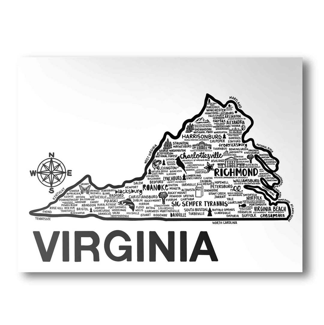 Virginia Map Print Minimalist State Map Katie Ford Etsy Canada