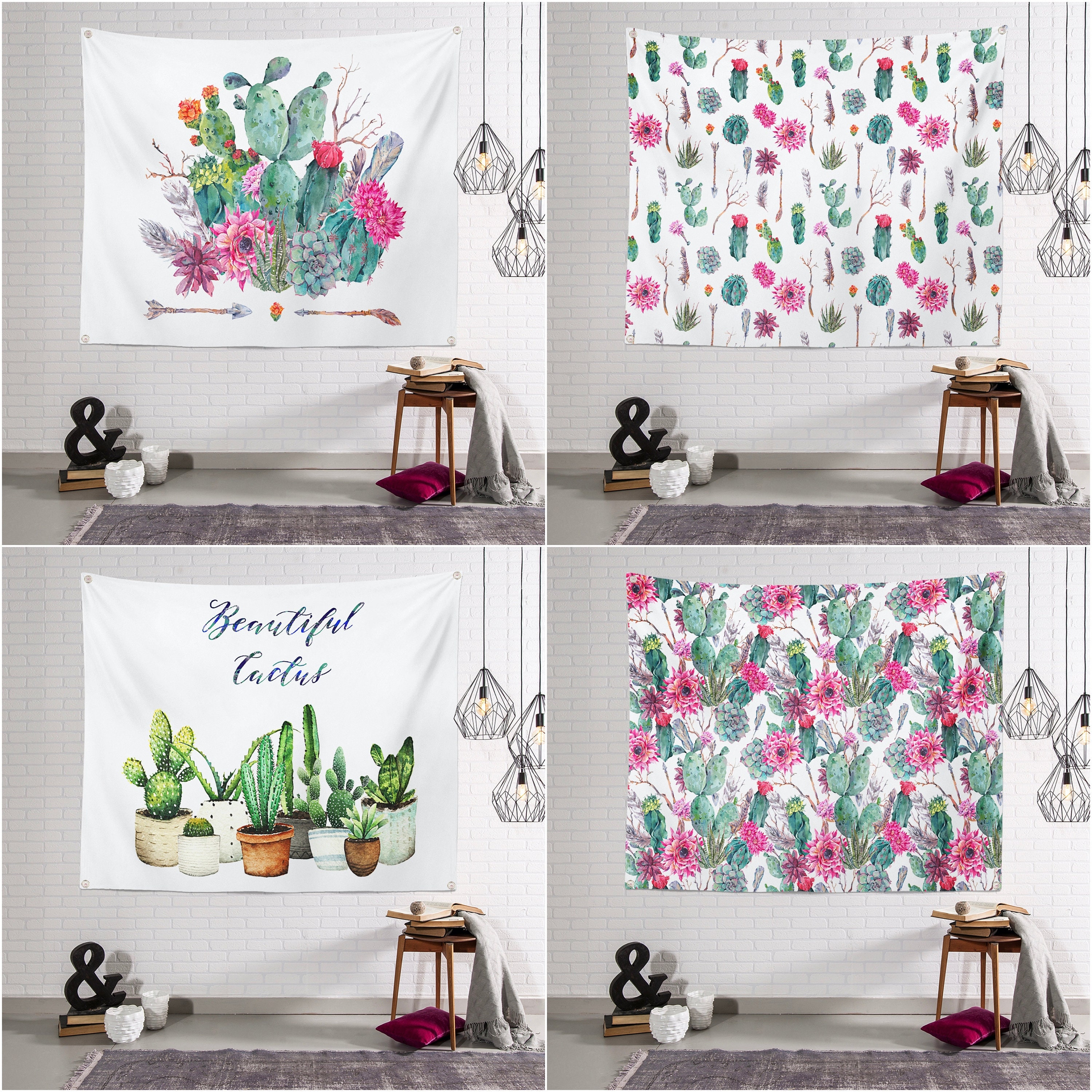 Floral Cactus Wall Tapestrycolorful Succulent Wall Hanging Etsy